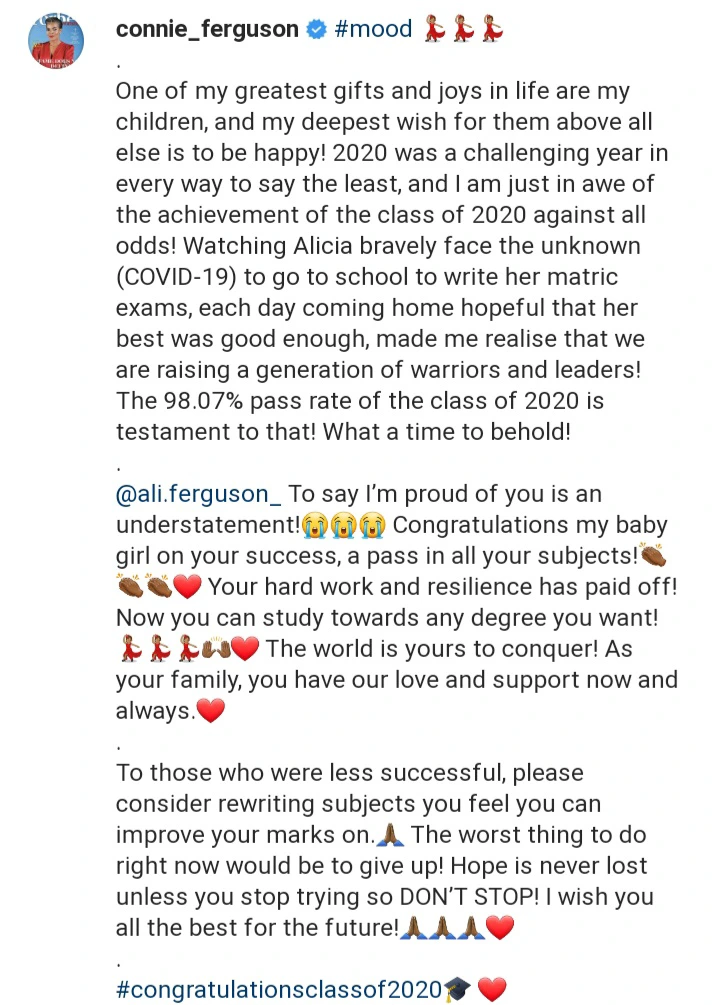 Connie Ferguson Congratulations Her Daughter On Passing All Of Her Subjects For Her Matric Style You 7 from res.6chcdn.feednews.com We would like to show you a description here but the site won't allow us. Jul 11, 2021 · détail de l'épidémie du coronavirus en france par département carte de france et graphiques de coronavirus (covid19) par département retrouvez ici le détail département par département avec des graphiques qui vous permettront de voir l'évolution des décès, hospitalisations, réanimations et retours au domicile.